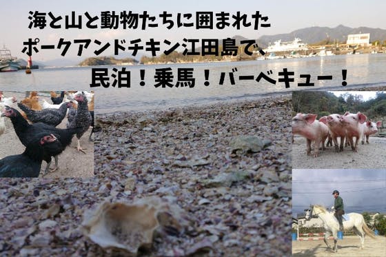 海と山に囲まれた自然あふれる江田島、体験型農家民泊『ファームステイ』で農家体験をしてみませんか?オーナーファミリーと共に生活し、動物たちのお世話や体験乗馬、夕ご...