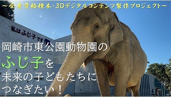 2025年7月30日、アジアゾウのふじ子は起立不能による循環不全のため57歳で亡くなりました。国内で生存するアジアゾウの中では4番目に高齢なおばあちゃんゾウでした。「ふじ子に再び会いたい!」「ありがとうを伝えたい!」このみなさまの想いを全身骨格標本という形にして、未来の子どもたちへつなぎます。