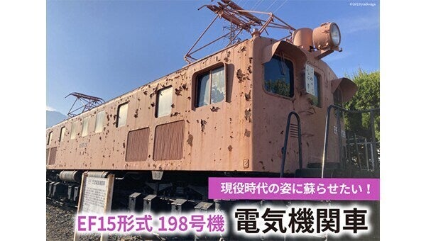 韮崎中央公園に昭和61年から保存されている「EF15形電気機関車」。当時の車体は「ぶどう色2号」が塗られていましたが37年の年月を経て、塗装の剥離や劣化が進んでいます。機関車のファンや地域の子どもたちに喜んでもらうため、もう一度、韮崎の地で「ぶどう色の機関車」の姿を取り戻すため、いま動きはじめます。