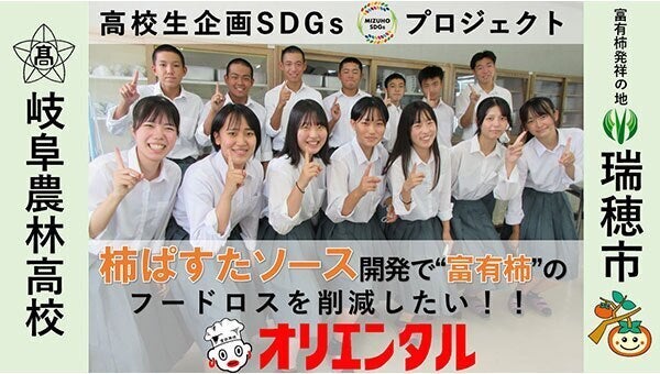富有柿発祥の地である岐阜県瑞穂市では、後継者不足が問題となっています。富有柿のブランドを守っていくため、出荷ロスとなる柿を活用し、一昨年、岐阜農林高校と共同で「柿ぱすた」をつくりました。今回は、「岐阜農林高校」とレトルトカレーでお馴染みの「オリエンタル」と共同で柿ぱすたに合うソースの開発を行います。