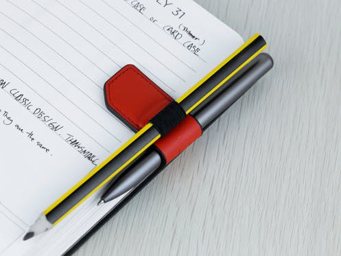 「Penclip Type-B(ペンシル・タイプビー)」はフルグレインレザー素材の汎用クリップ。強力マグネットと伸縮バンドでペンに限らず、いろいろなものをしっか...