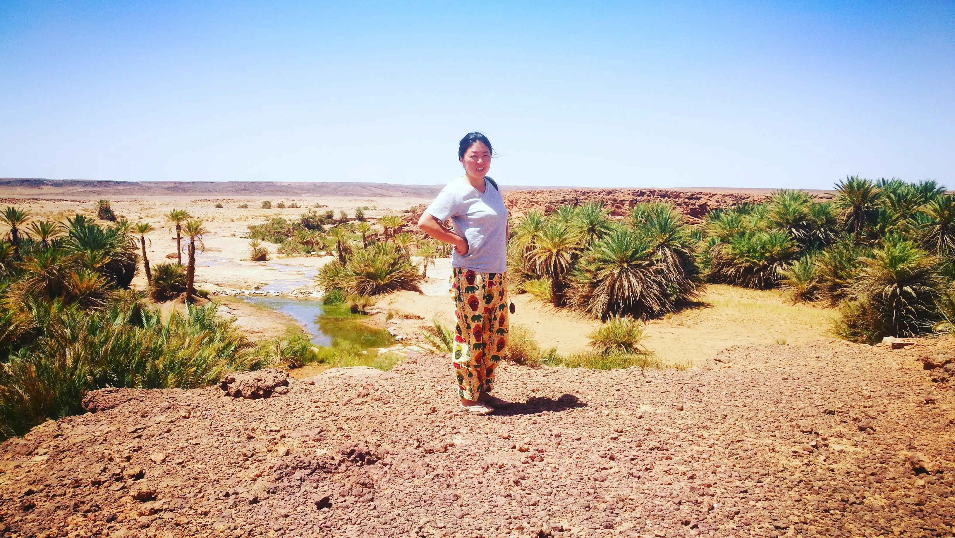 青森県生まれ青森県育ち。とにかく「砂漠」に異常な憧れを持ち21歳の時に初めてエジプトで砂漠に触れる。 その翌年に訪れたモロッコで夫になるベルベル人のアリに出会い、4年後に結婚。二人で東京に住みながら私は大黒柱としてOLをしていた。 2004年に念願叶ってモロッコへ移住。アリ、娘あみら(4歳)、息子ライアン(2歳)、愛猫アンと暮らしていたが、今は義理家族共に12人でサハラ疎開中。