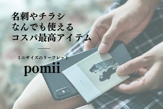 Pomii(ポミー)は、ポケットにも収まる程のミニサイズのリーフレットです。 名刺ケースにも収まる大きさなので新しい名刺のスタイルとして活用いただけます。