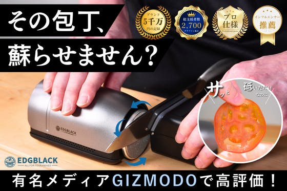 もう包丁研ぎに悩まない!毎分380回転で包丁を高速研磨、誰でも簡単に研げる電動シャープナー!砥石が電動回転することで、圧倒的な砥ぎの効率化とプロのクオリティを実...
