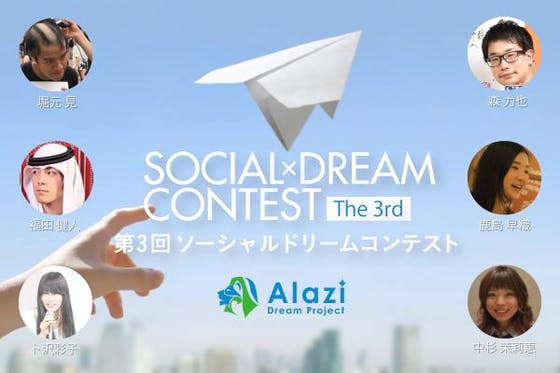 「誰もが誰かの夢を応援できる社会」の実現を目指しNPO法人アラジは 第3回ソーシャルドリームコンテストを開催します。 6人の登壇者が夢を語ることで、収益を世...