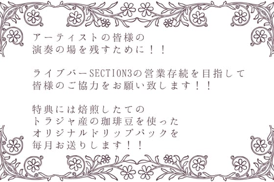 珈琲を毎月お届けします♪大阪・鶴橋にあるライブバーsection3を応援するために!!コロナで来客・売上が落ちて厳しい期間が続く中、アーティスト様たちが歌う場を...
