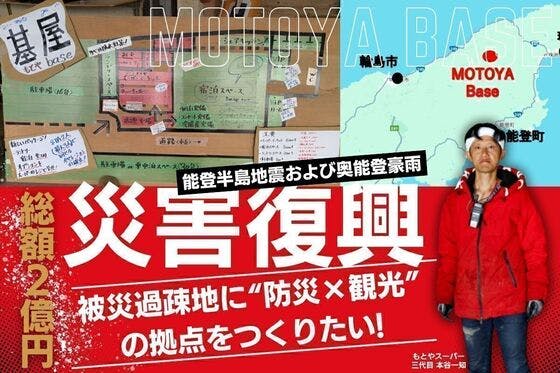 今年、千年に一度と呼ばれた大地震と大洪水という大災害に二度も遭遇し崩壊した、石川県輪島市町野町の唯一のスーパー「もとやスーパー」被災した建物を修繕し、町野住民の...