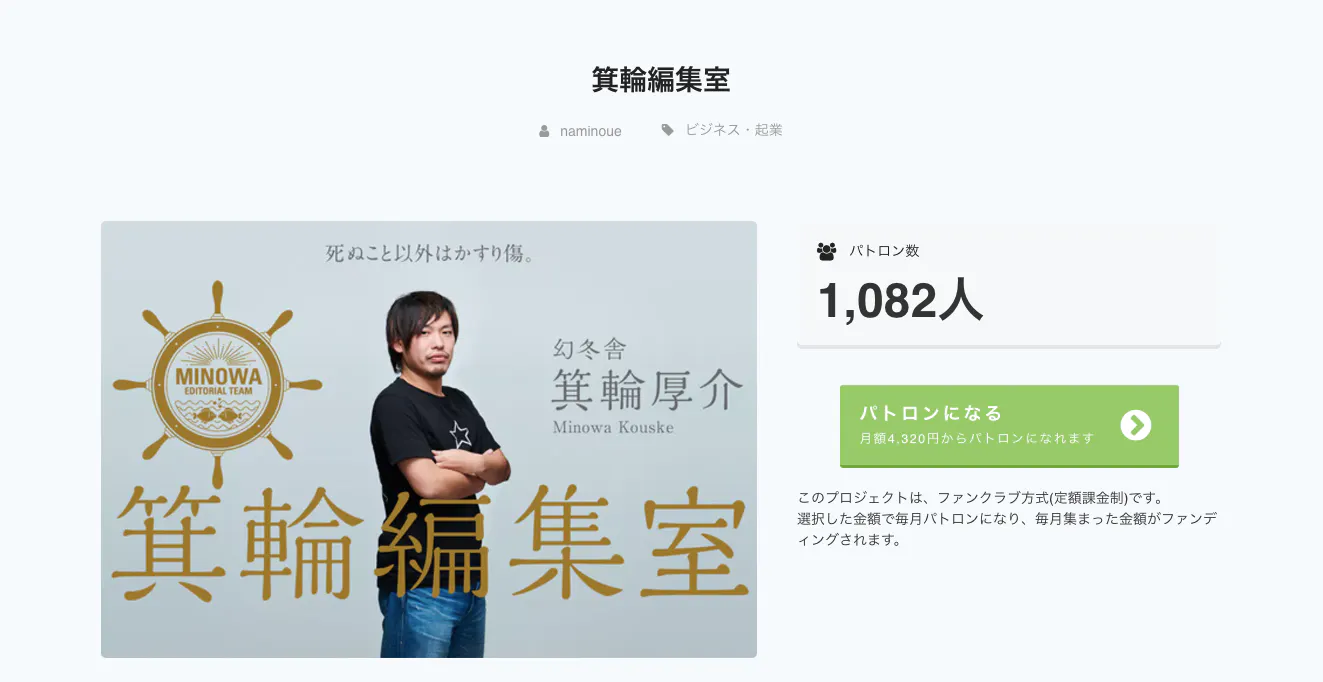 また幻冬舎で勤めている一方で自身の会社を立ち上げ、約1,100人のメンバーが在籍するオンラインサロン『箕輪編集室』の運営やシェアハウス・オンライン書店などのプロデュースを行い、編集者の枠にとらわれない活動をして今では月給の30倍以上の収入を生み出している。