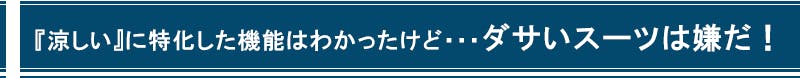 ファッション性を崩さずに『涼しい』に特化した【空冷式スーツ】でなくてはなりません!