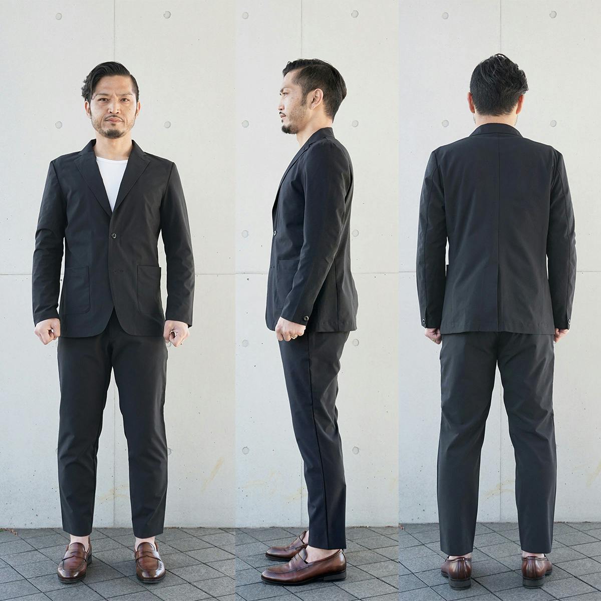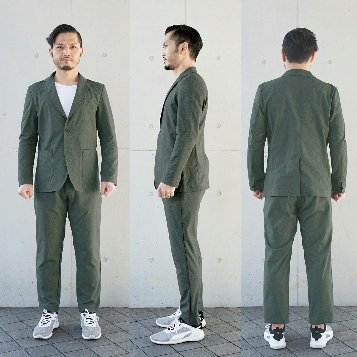 見た目はスマートなイケてるセットアップスーツ!