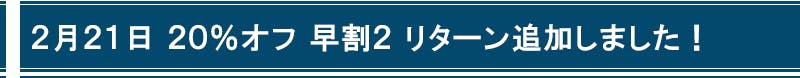数量限定 早割2 20%OFF