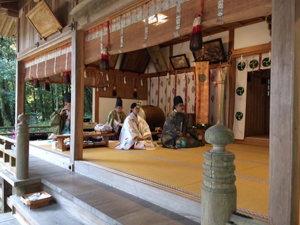 そして西八幡宮に移動して、出雲式祭典がはじまりました。龍笛と太鼓でおごそかに神楽が奏上され、祝詞があげられて、浦安の舞を奉納させていただきました。