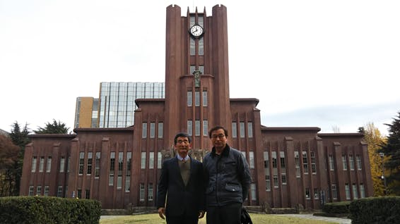 写真 2. 共同推進者の 志柿俊朗農学博士と中川栄一 東大安田講堂前