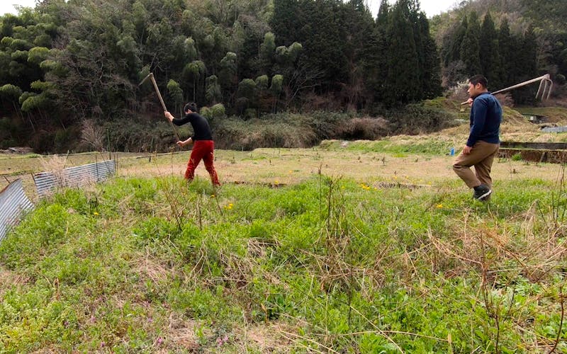 チェーンソーも草刈り機も動かないので、今は人力で畑を耕しています。