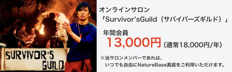 ※NatureBase真庭は、オンラインサロン「Survivor'sGuild」の会員に開放しています。