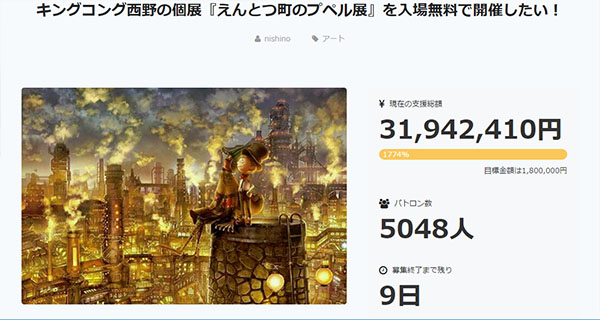 西野亮廣さんのクラウドファンディングは、残り7日を切っています。