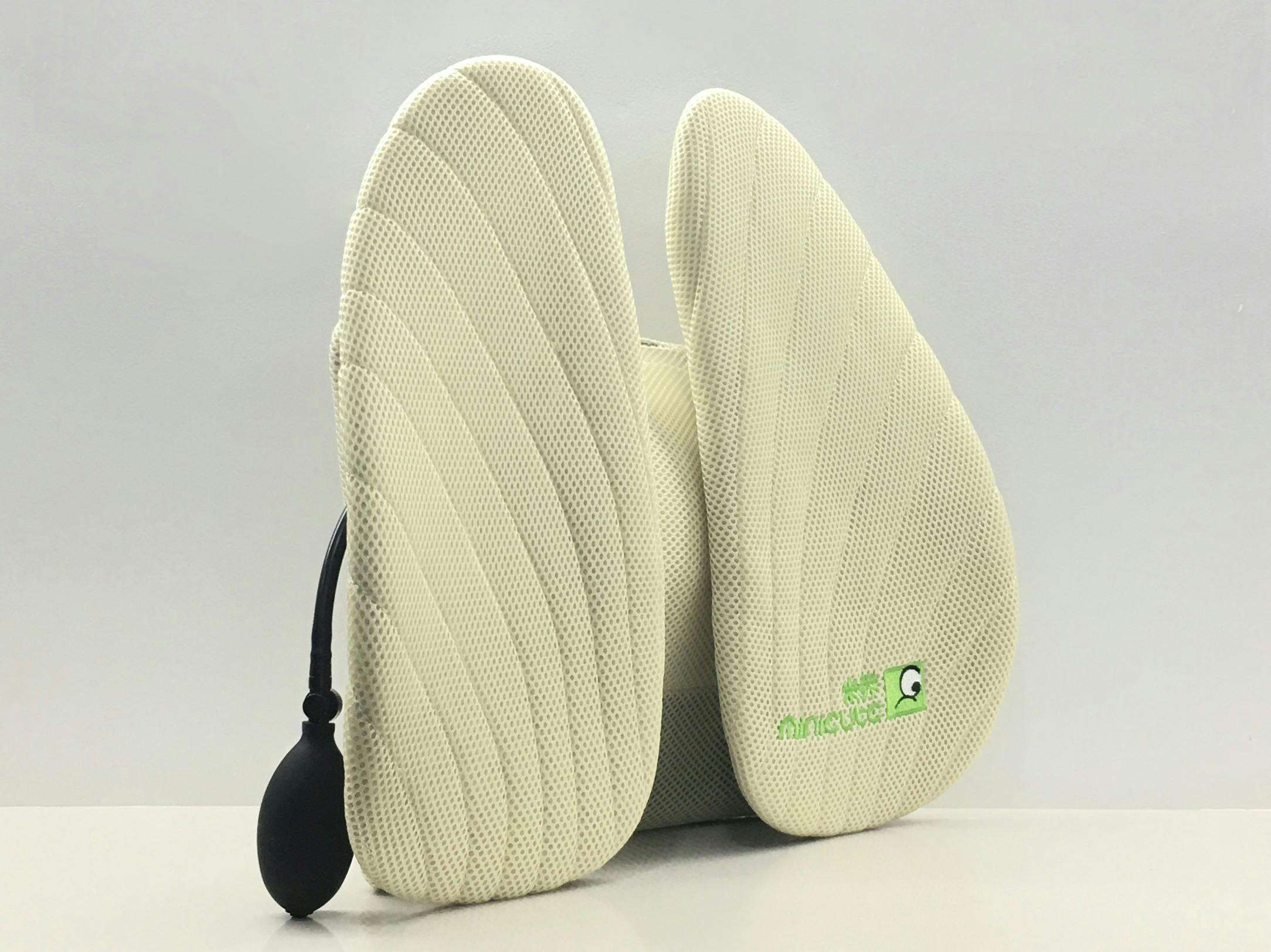 MiniCuteはパッド面の厚みを空気圧で調整できる仕組みです。一般的なウエストサポートパッドと違い、身長や体型に合わせてサポート力やフィット感を調整できるので、あらゆる人にオーダーメイドの座り心地を提供します。