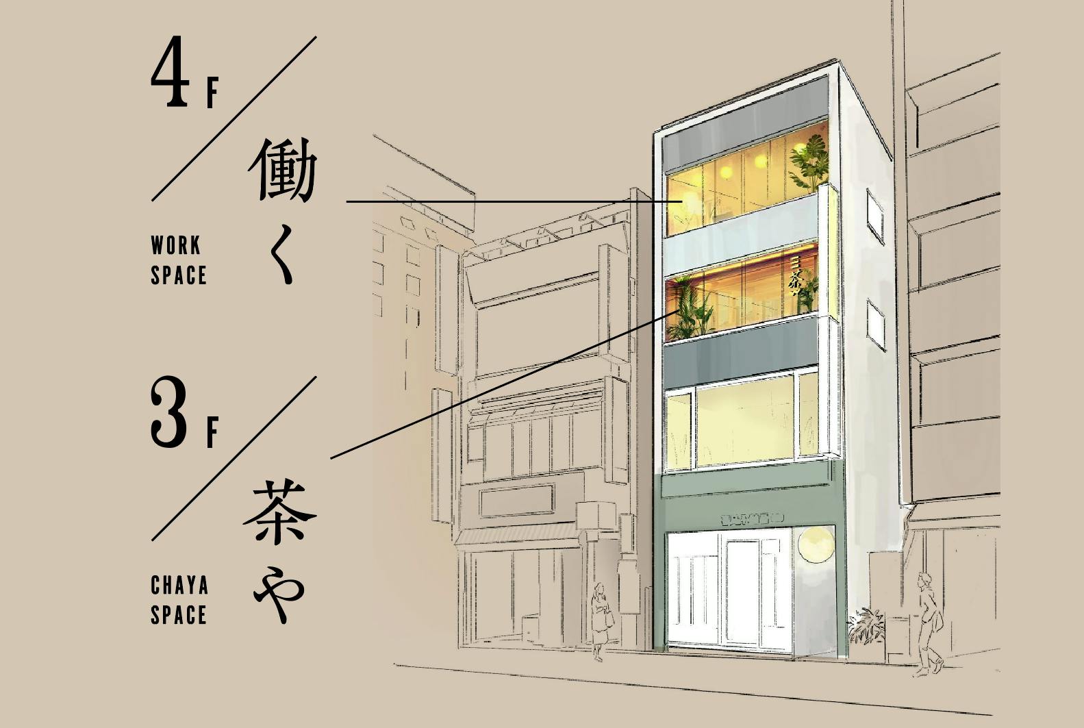3階は「三茶に開けた社交場(茶や)」に、4階は「人とつながる仕事場(オフィス)」に。