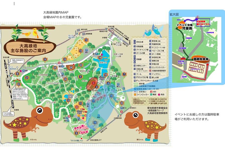 会場住所:愛知県名古屋市緑区大高町字高山1-1 若草山近くの児童園(公園MAP8)で開催。