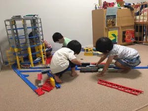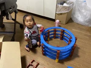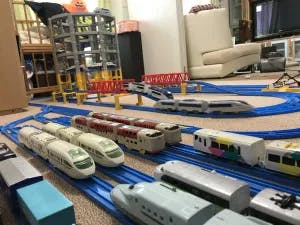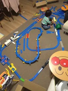 - ・広いスペースを使って大量のプラレールで遊びまくれる