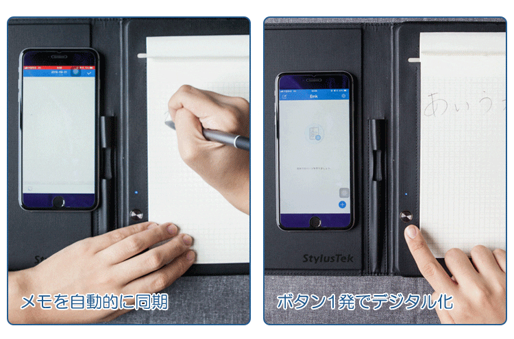 「StylusTek」は手書きでメモしながら、その書き味がスマホやタブレットにそのまま再現されるスマートメモ帳です。