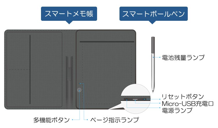 普通のノートでも、付箋でも、どんな紙も使えるのがポイントです。使いやすい、専用のボールペンでアナログ感覚でご使用いただけます。