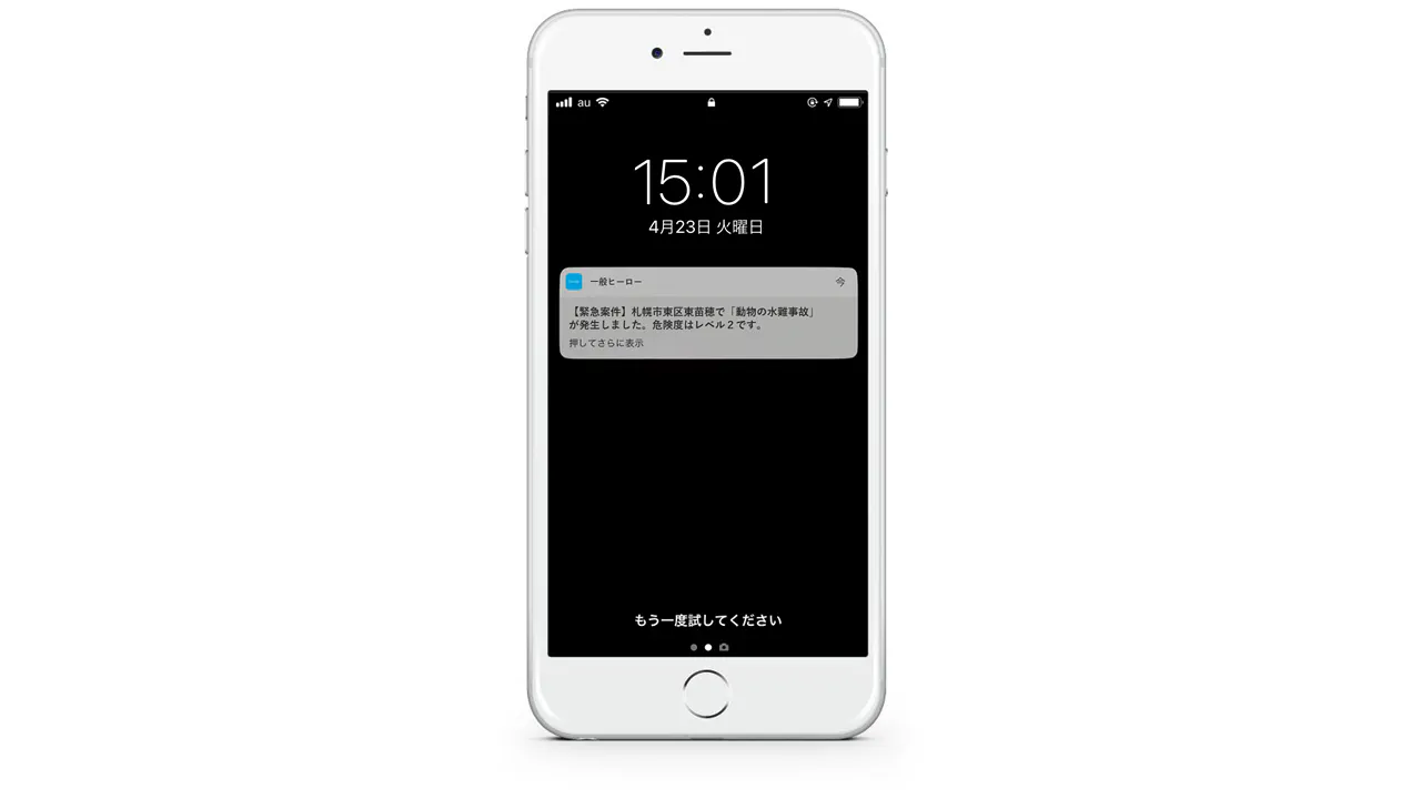 2.付近のヒーローがプッシュ通知を受信