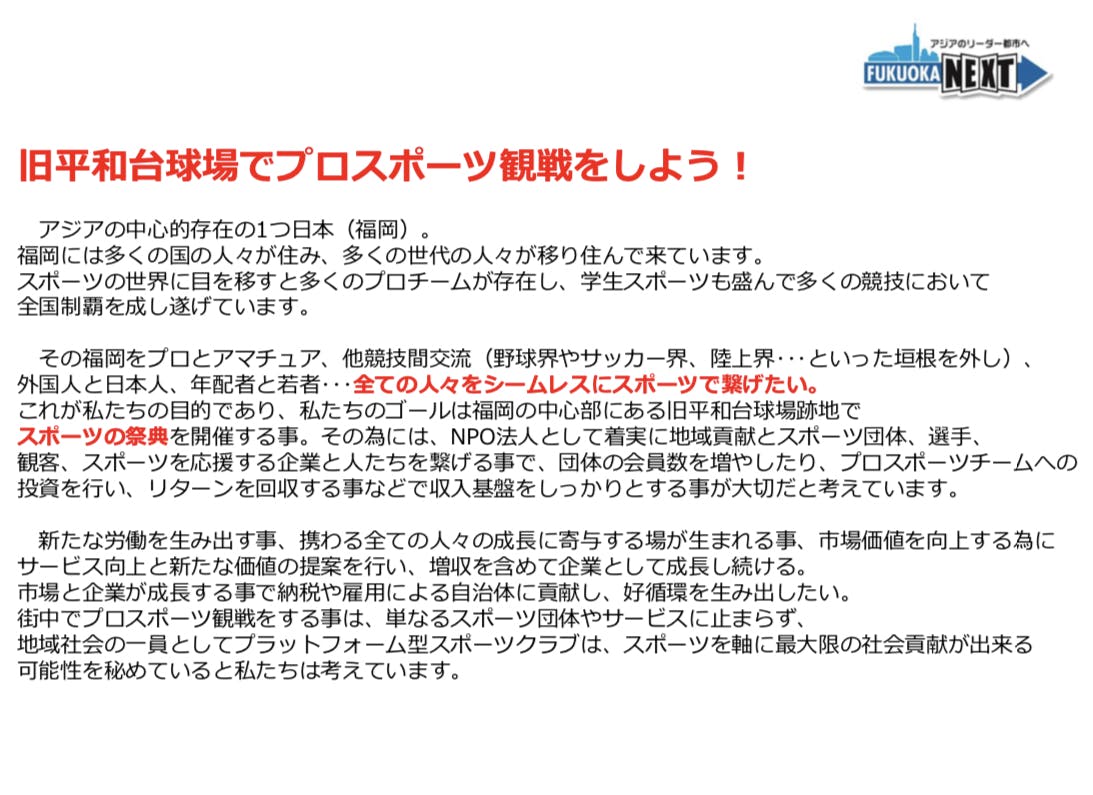 サッカーを愛する人、福岡を愛する人、スポーツが社会問題を解決出来るとお考えの方、