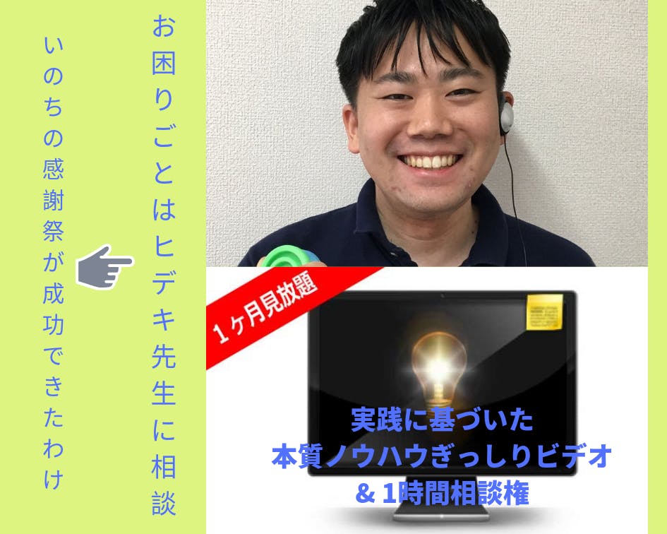 いのちの感謝祭名物、「ヒデキ先生」。ヒデキ先生が、上面のノウハウでなく、地に足ついた信念を持った起業と運営方法を私に伝えるために作ってくださったビデオをベータ版として今回、リターンでお見せすることにします。