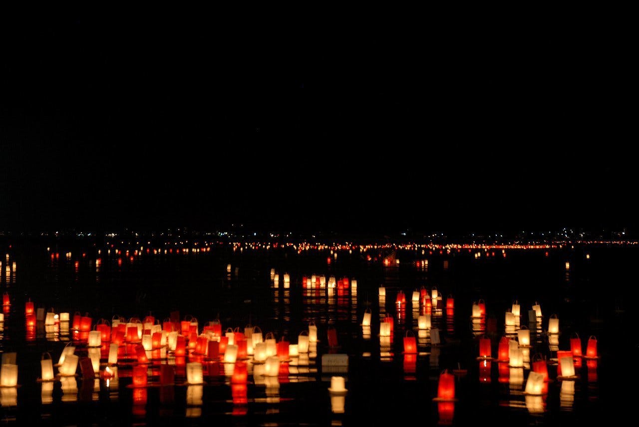 ◆盆に迎えた先祖の霊を再び極楽浄土へ送るため、供物にささやかなともしびを添えて海へ流したのが燈籠流しの始まりと云われています。やがて海へ流す供養火の美しさが評判となり多くの見物客を迎えるようになりました。