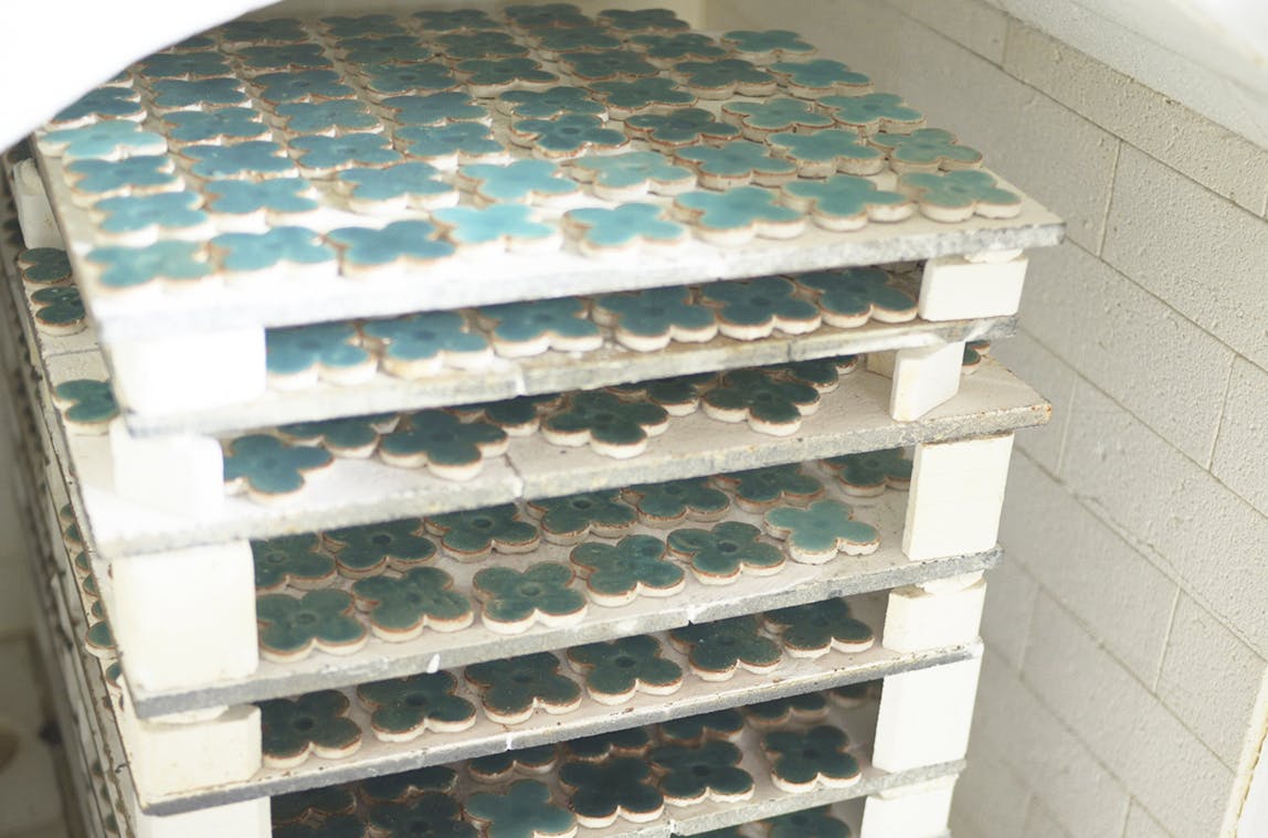 スタジオレコード では以前から内装用のタイルを製作しており、愛知県一宮市のカフェのカウンター・タイルや、那須塩原市にオープンした美術施設の壁面タイル1万8000枚など、釉薬や素地の実験から製作・焼成まで携わってきました。