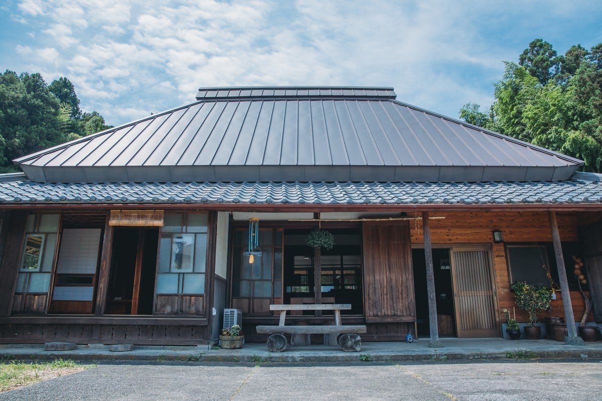 掛川駅から車で約20分ほど南に走り、山と田んぼ、そして茶畑に囲まれた場所にゲストハウスはあります。