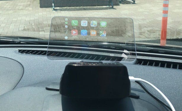 しかも本製品の場合、これらの機能がすべて統合されています。様々な情報をヘッドアップディスプレイで運転視界に投射表示でき、音声とリモコンで簡単に操作できます。
