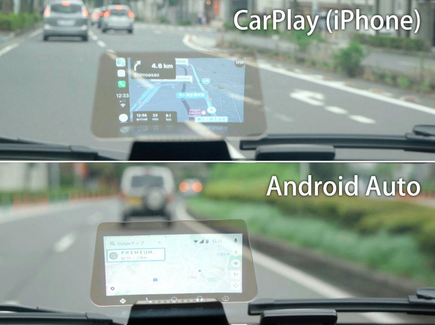 どちらのスマホも、HUDのUSBポートにケーブル接続するだけで自動的に認識します。スマホを変えてもHUDはずっと使い続けられます。