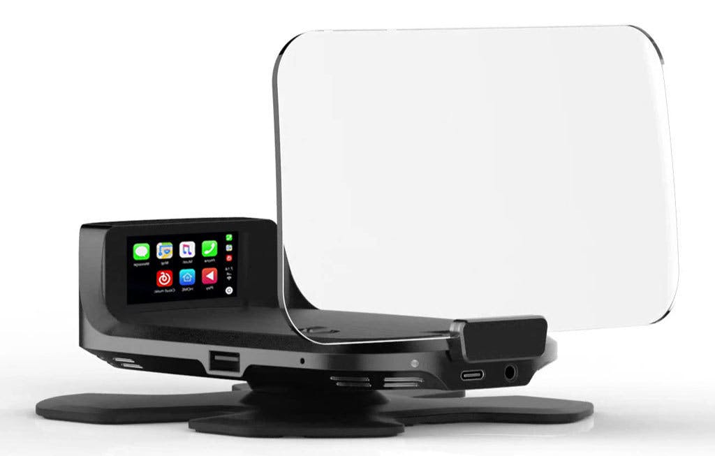 スクリーンは折りたたみ式で、使わないときも邪魔になりにくい設計です。台座部が向き、角度調整可能ですので設置後も見やすい向きに変えられます。台座部は脱着可能でHUD本体のみでの設置もできます。