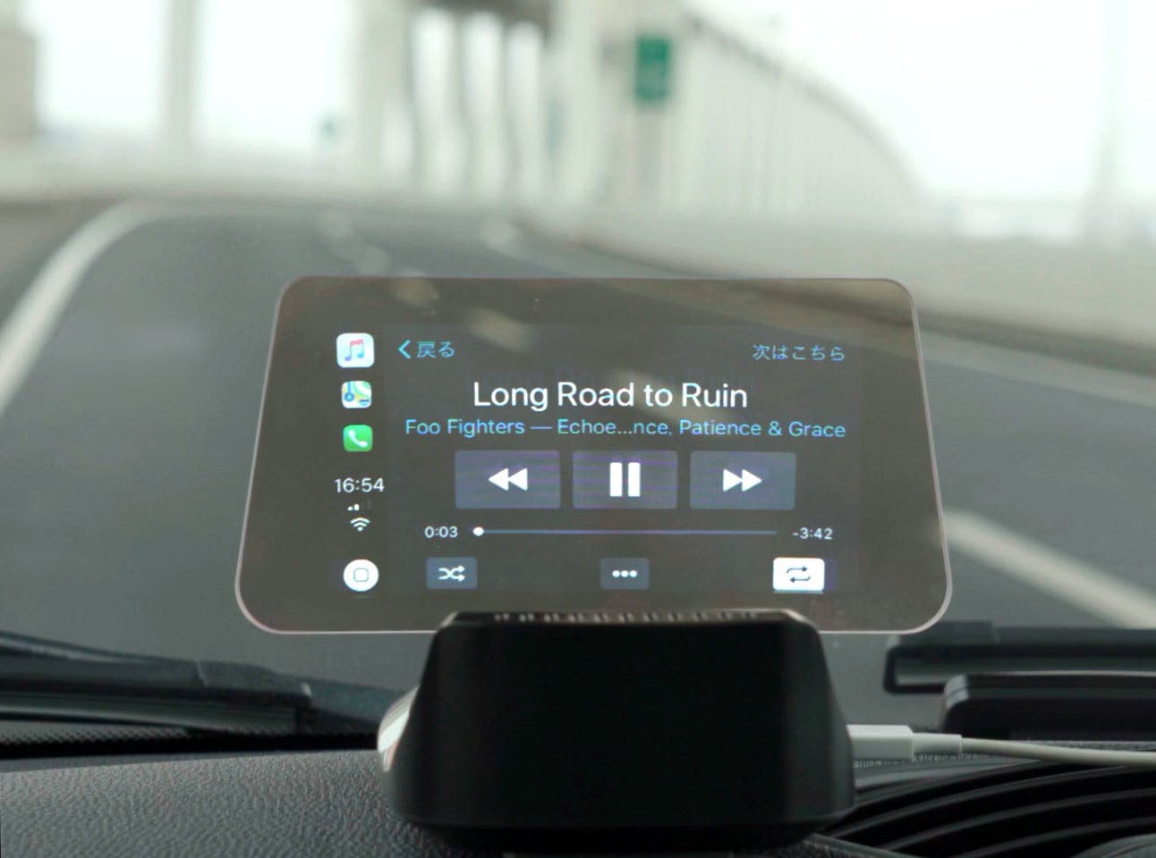 Siri等の音声アシスタントに「〇〇を再生」と指示すれば一発選曲。膨大なリストからアーティスト名を選んで、曲名を選んで、、、などと面倒な手間はいりません。再生中の曲名も、HUDのスクリーンで道路から視線をそらさずすぐ確認できます。