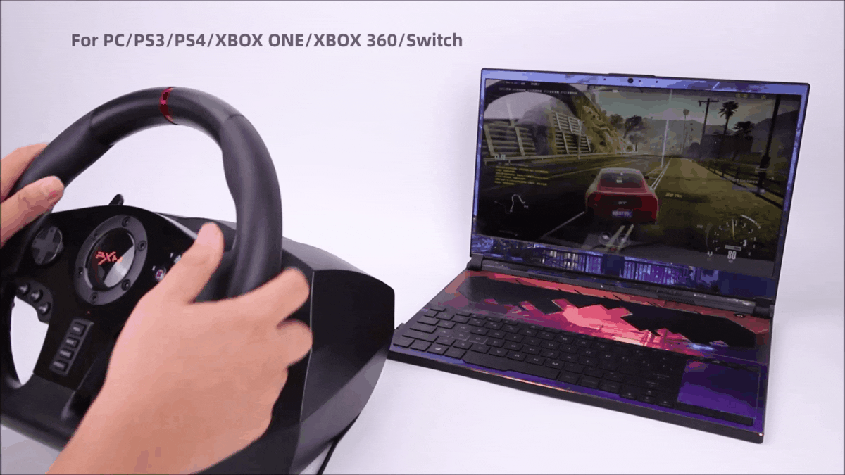 レースゲームなど車の運転でご利用いただけるハンドルコントローラーです!