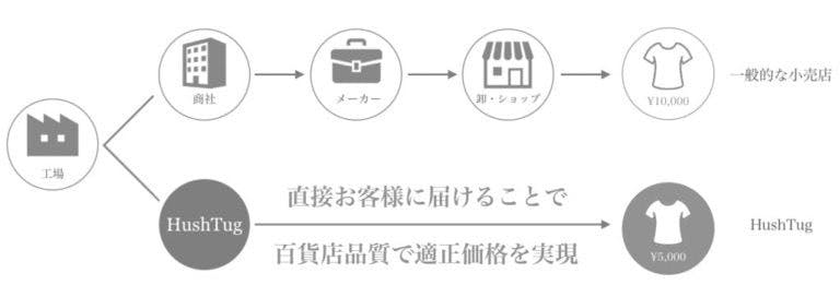 HushTugさんがこれほど人気の理由の一つに中間業者をなくしたビジネスモデルが挙げられます。