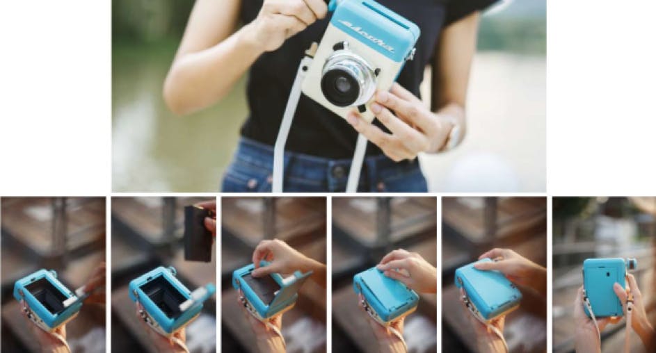 香港のデザイン会社Graphic Guides Design Company 社が開発した、手動巻取りで電池不要のレトロビンテージ風デザインのインスタントカメラです。