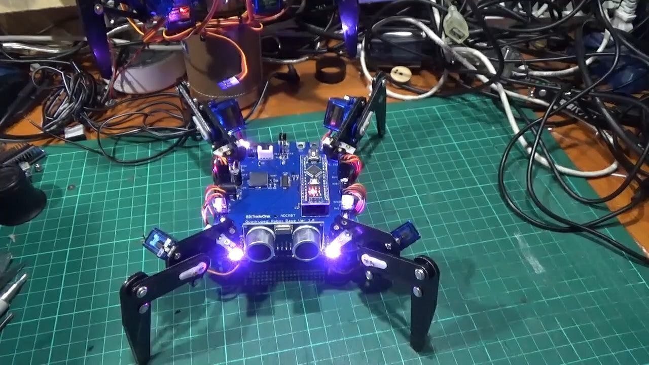 Arduinoベースでプログラミング可能な4足歩行ロボット”クアッドクローラー”は、一般に手が出し辛かった多脚型ロボットを自分で組立ながら基礎から学べるロボットキットです。