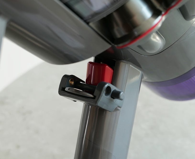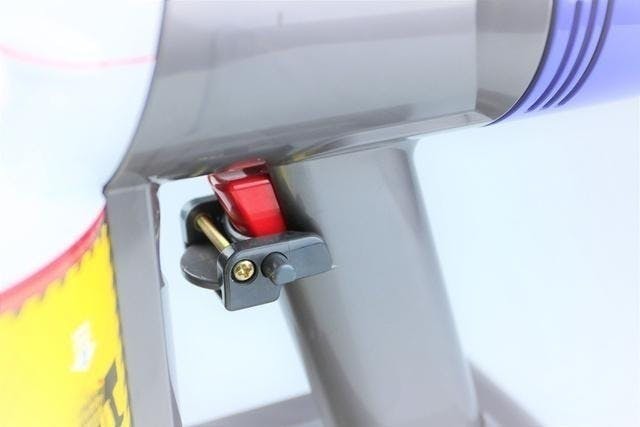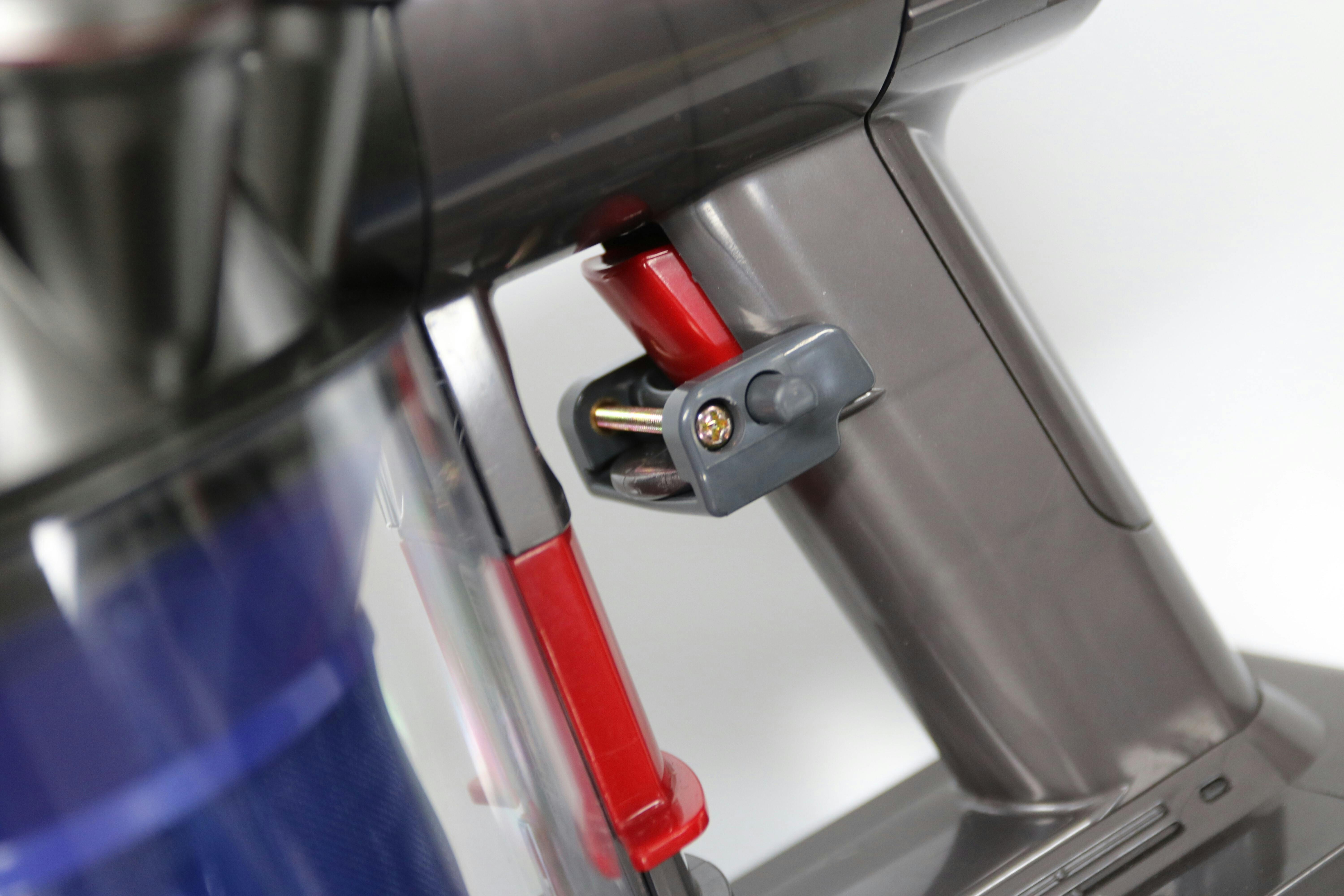 バッテリーの節約にも効果的で直感的な使いやすさを誇るダイソンのパワースイッチしかし、押し続けていると、ときどき不便と感じるのは事実。