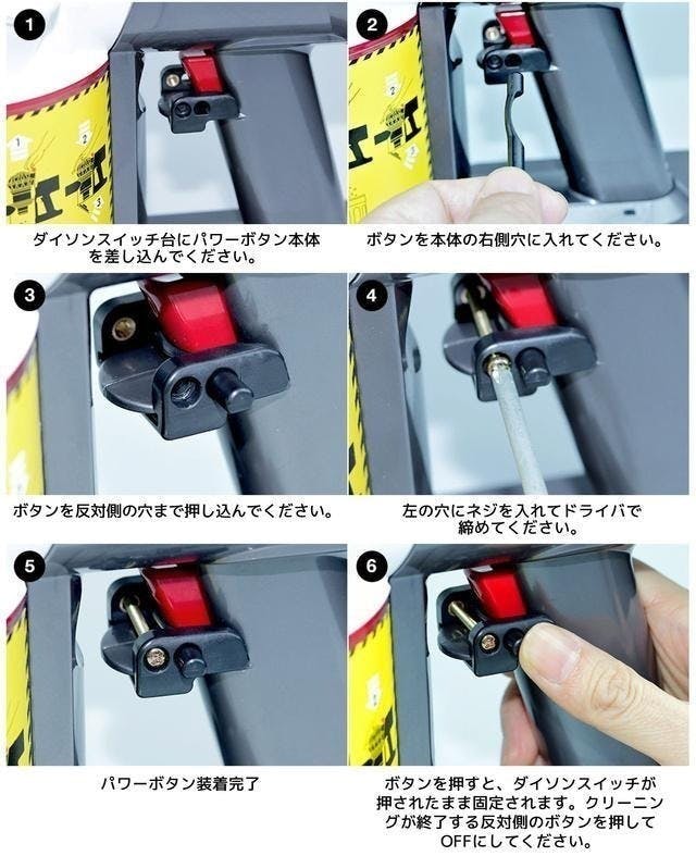(壁や天井を掃除するとき、スイッチを押し続けなくても作動出来る「トリガーパワーボタン装置」)