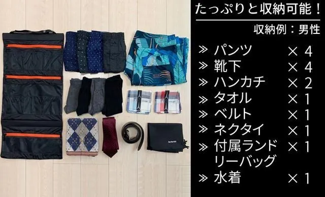 On the GOバッグ2.0は見た目よりも多くの物を収納することができ、日数にして約3〜5日分の下着や小物を収納することができます。