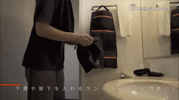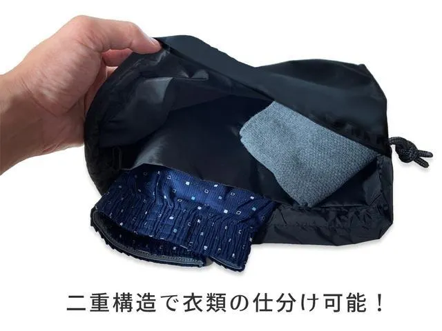 On the GOバッグ2.0にはランドリーバッグが1つ付属するので、使用済みの下着や靴下をきれいな衣類と分けて清潔に収納することができます。