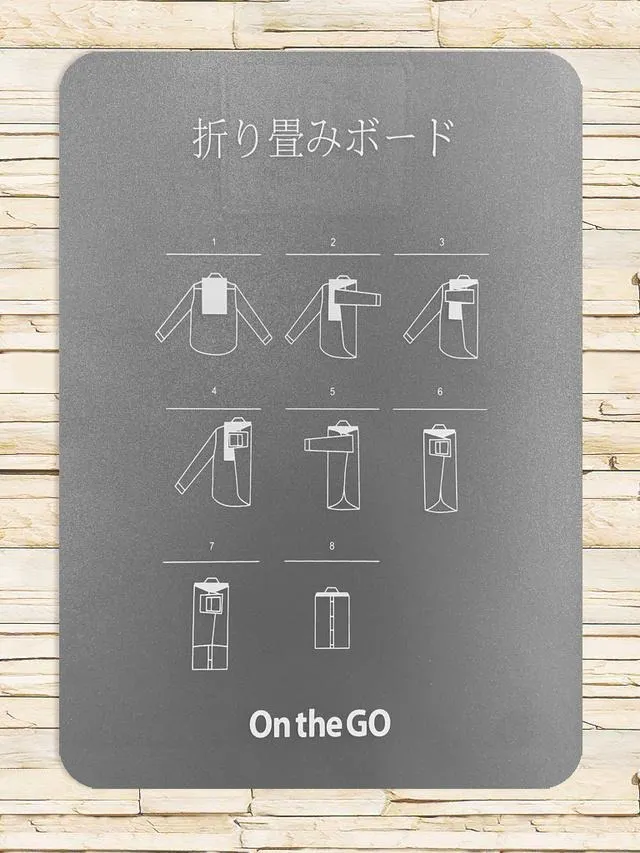 On The GOバッグには2枚の「シャツ折り畳みボード」が付属。このボードには折り畳む方法も記載されているので、誰でも簡単にシャツを綺麗に折り畳むことができます!