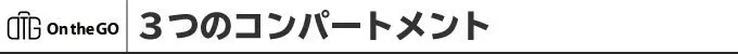 On the Goバッグ2.0には3つの収納コンパートメントがあります。例えばそれぞれに下着、靴下、アメニティグッズなどの小物を分けて収納すれば、すっきり整理することができます!