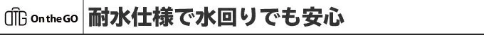 On the GOバッグ2.0は耐水素材でできており、水がかかっても中身は濡れません。安心してバスルームでも使うことができます!
