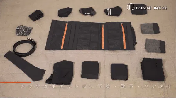 利用方法はとてもシンプル。On the Goバッグ2.0自体が3つのコンパートメントに分かれているので、ジャンル別に収納してたたむだけ!