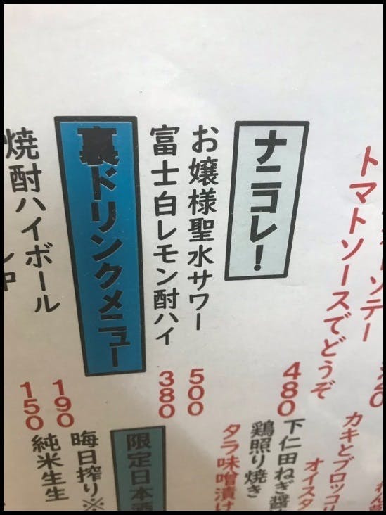 そして、『お嬢様聖水』や『お嬢様聖水サワー』はもちろん