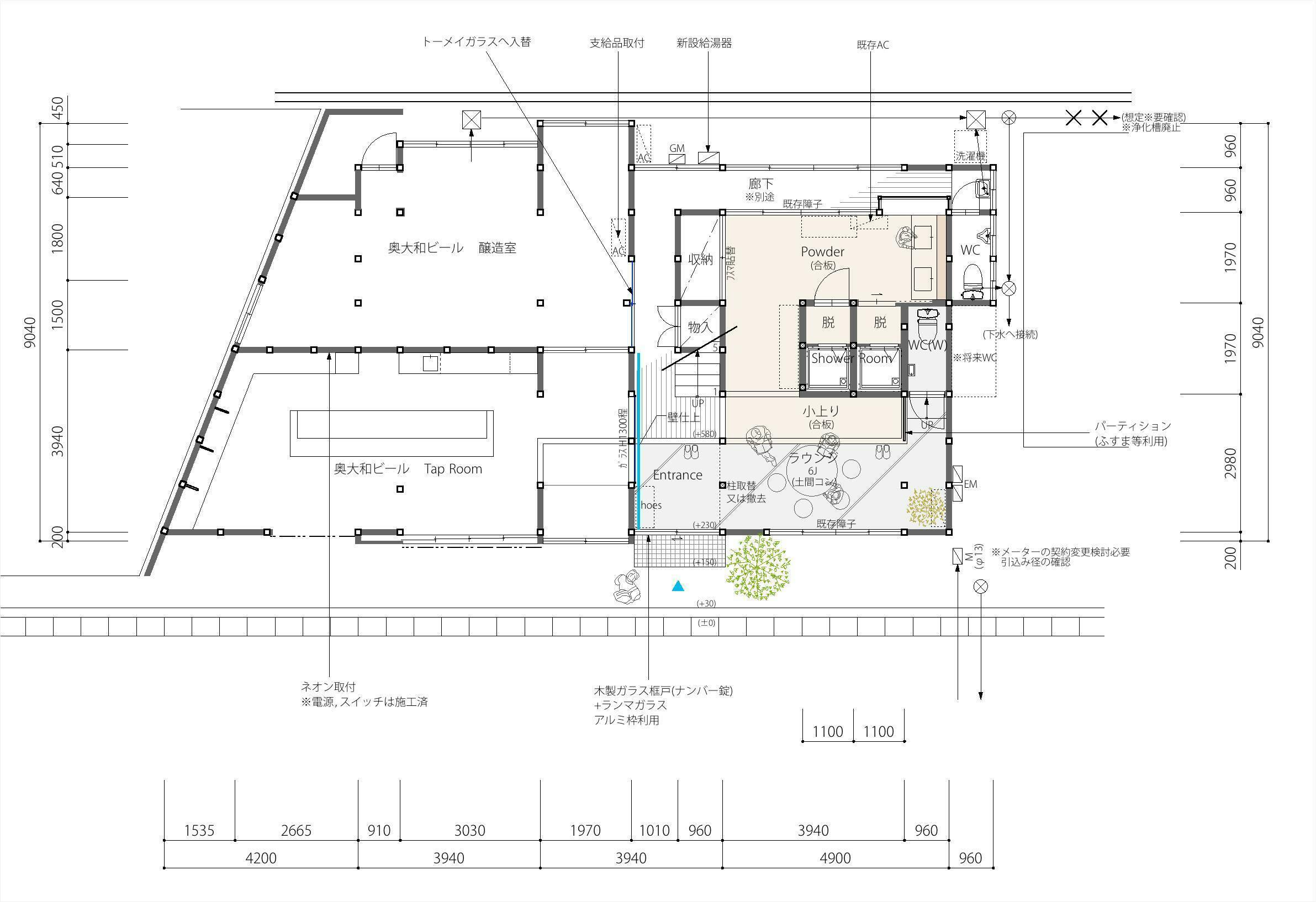 そんな様々なお客様がご来店された時に、ワクワクして、いちいち楽しんでいただけるような空間にデザインしました。建物の半分にタップルームと醸造室があり、もう半分のスペースに宿をつくる予定です。